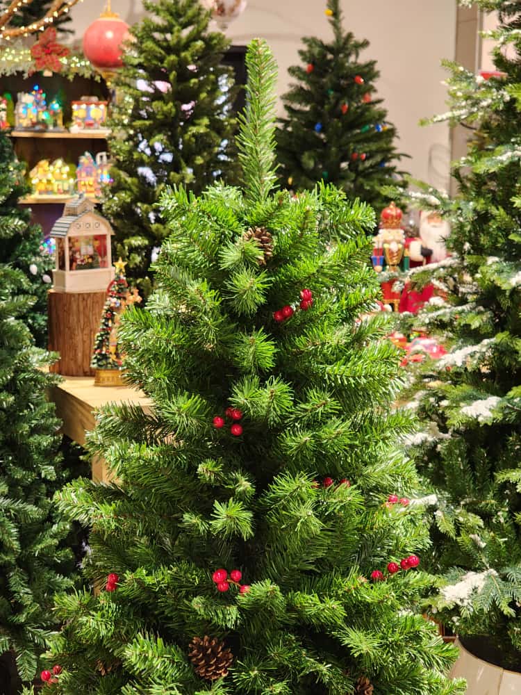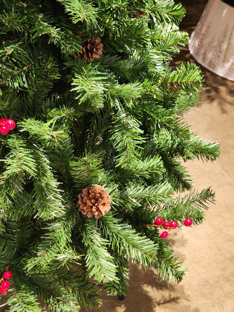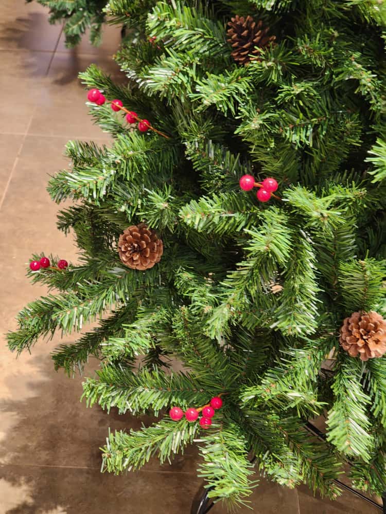 Árvore BERRY E PINHA, uma árvore tradicional bem cheia de galhos que já acompanha berry e pinha espalhados pela árvore, para quem procura uma árvore tradicional.