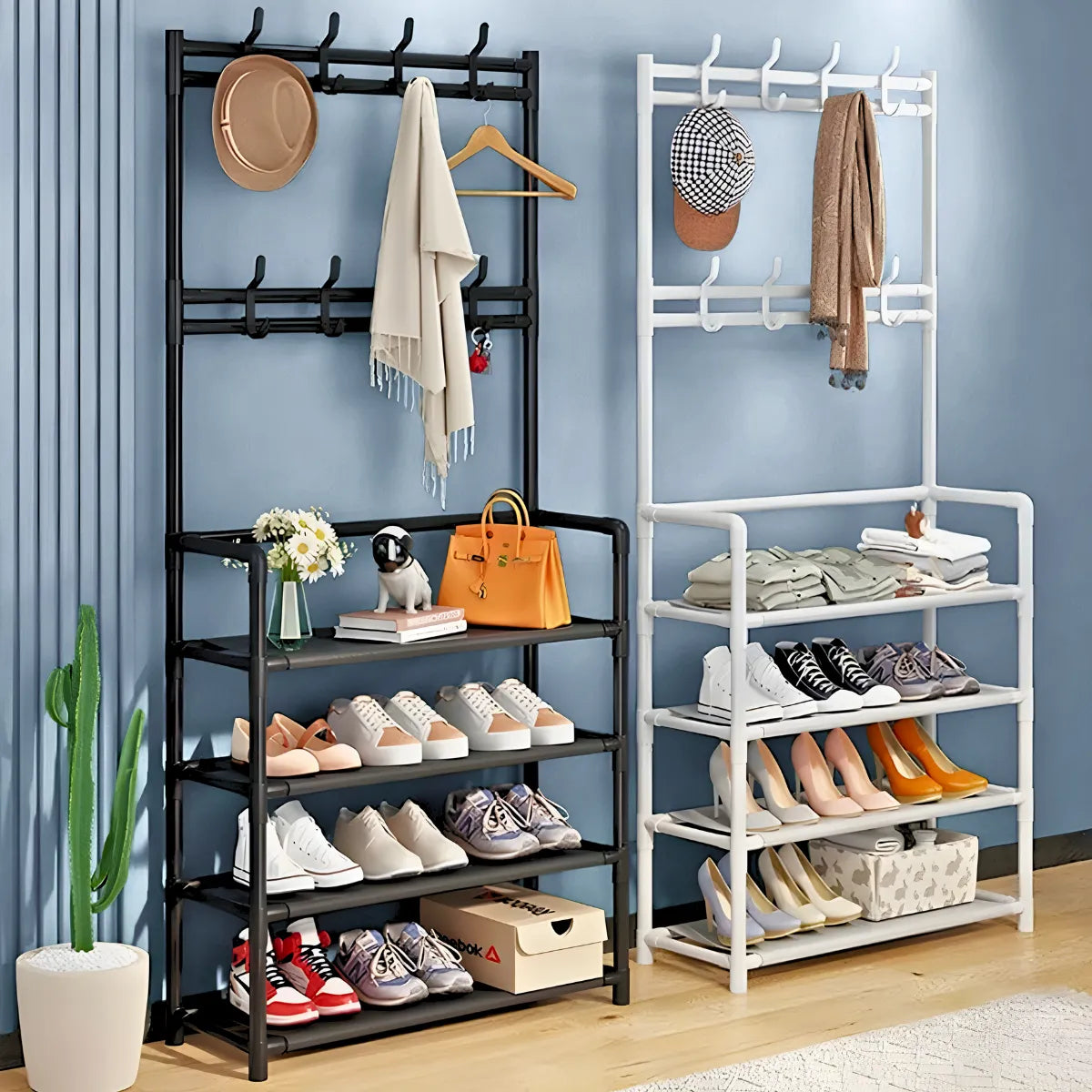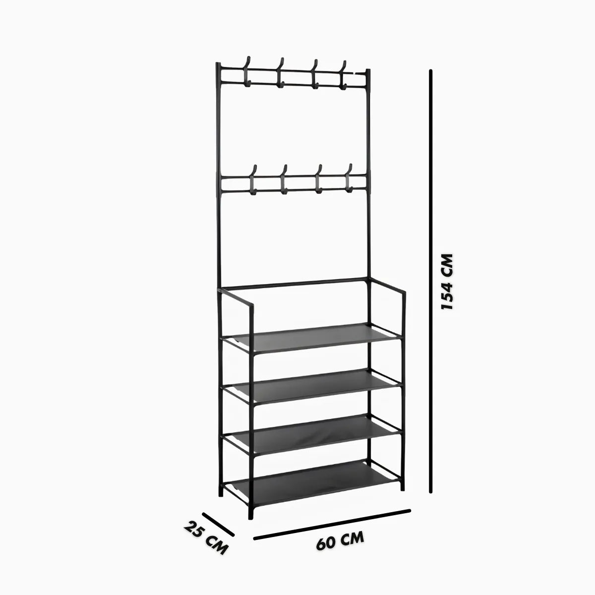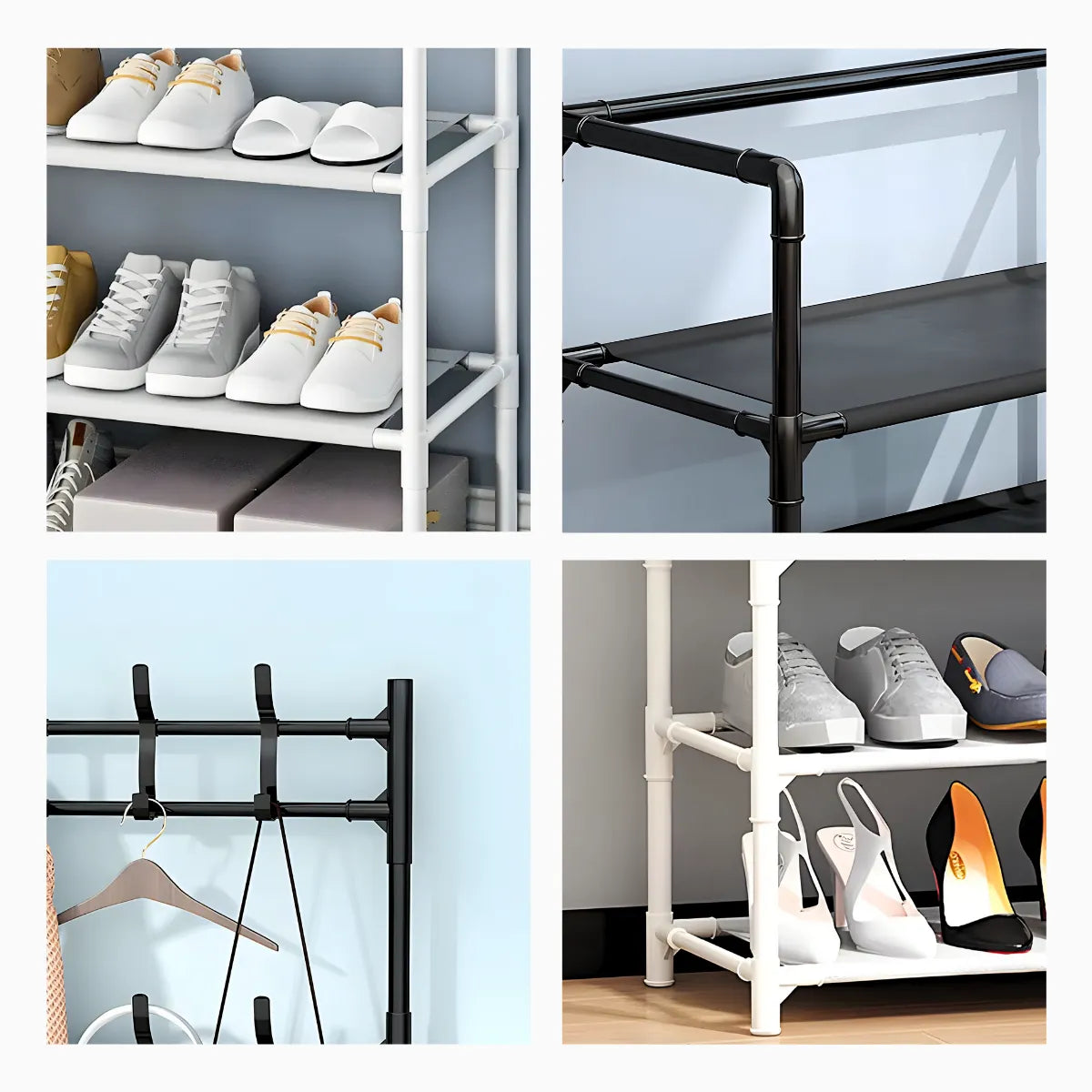 Sapateira Organizadora com Ganchos e 4 Prateleiras – Estrutura Metálica e Versatilidade para Seu Espaço