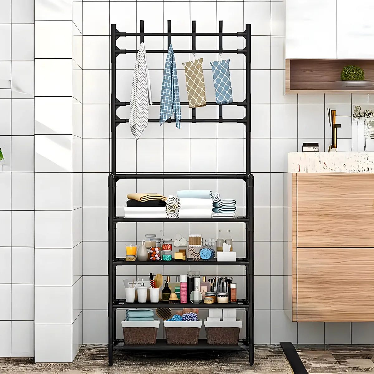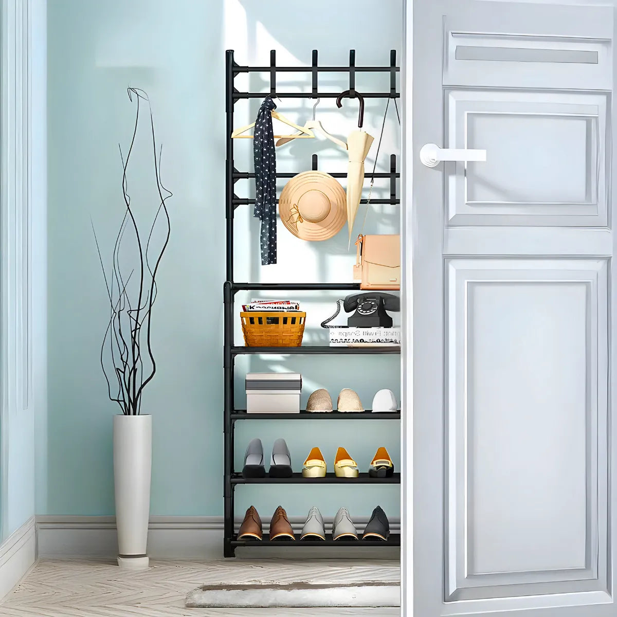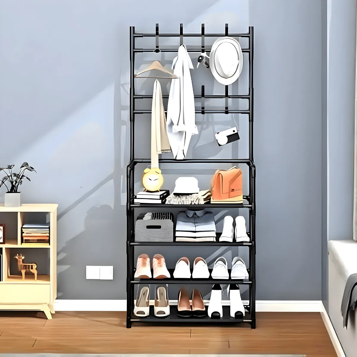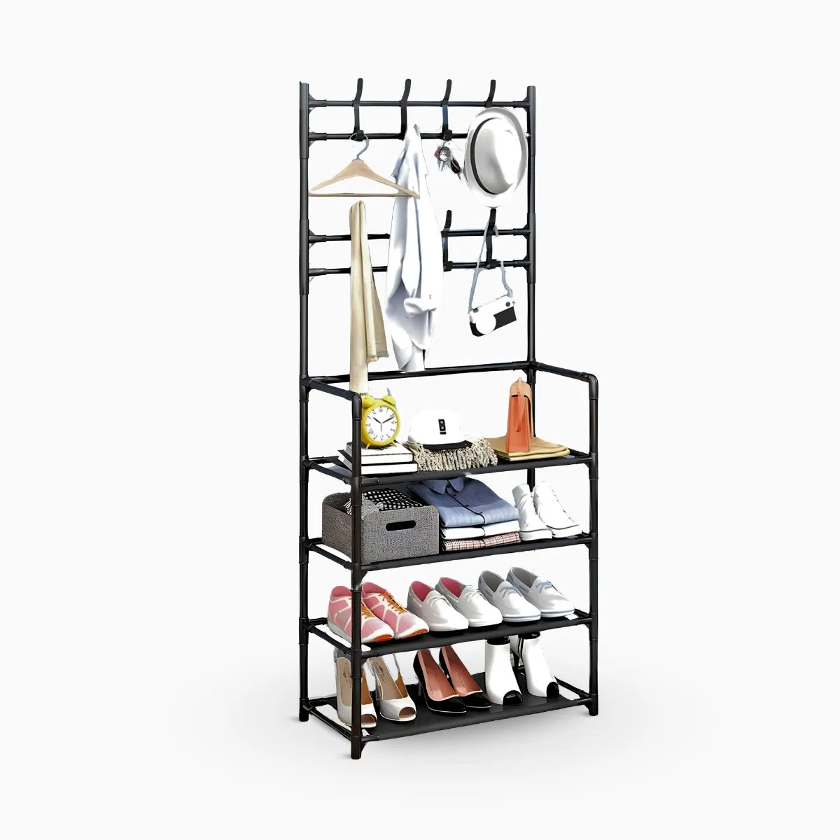 Sapateira Organizadora com Ganchos e 4 Prateleiras – Estrutura Metálica e Versatilidade para Seu Espaço