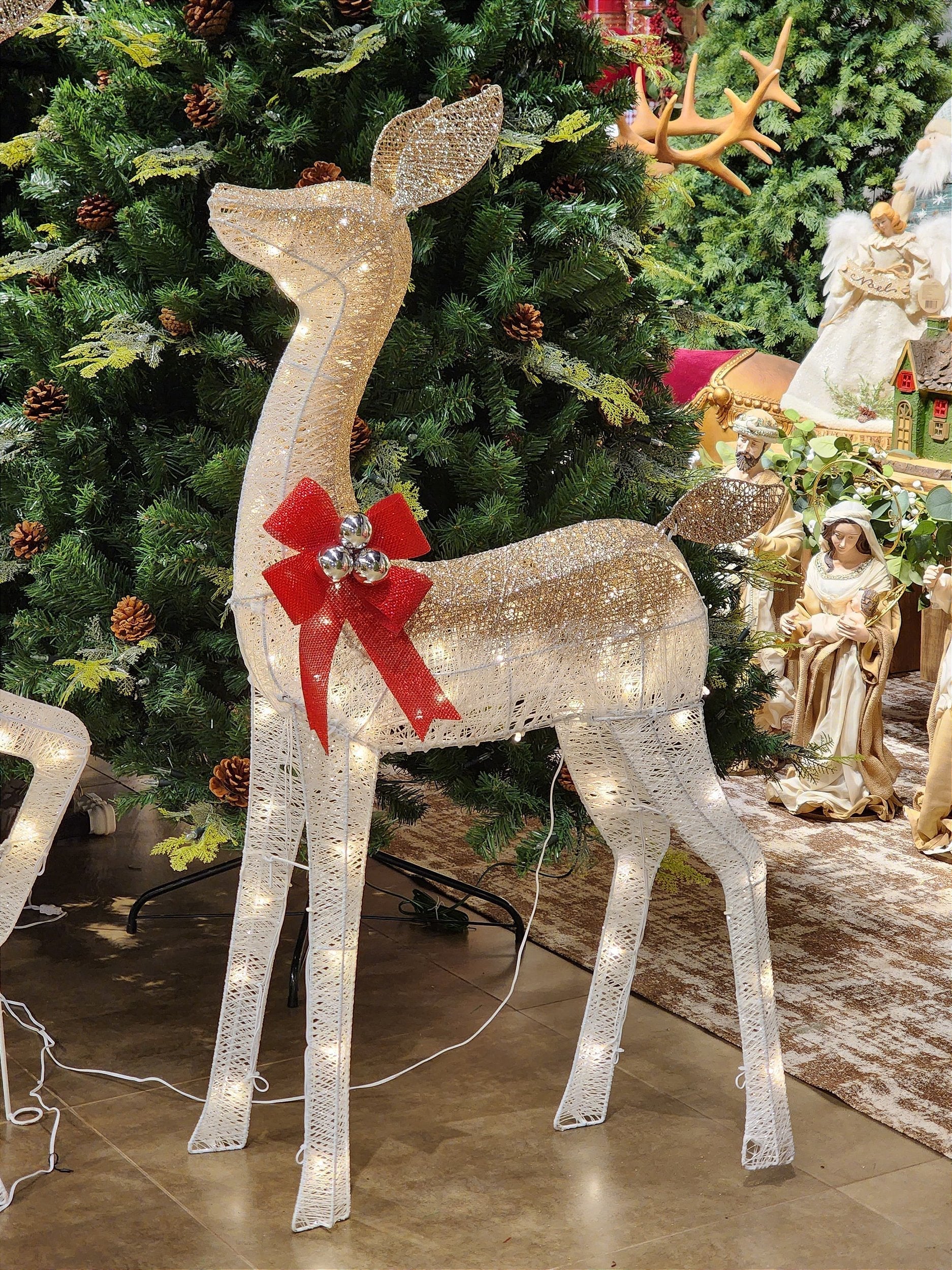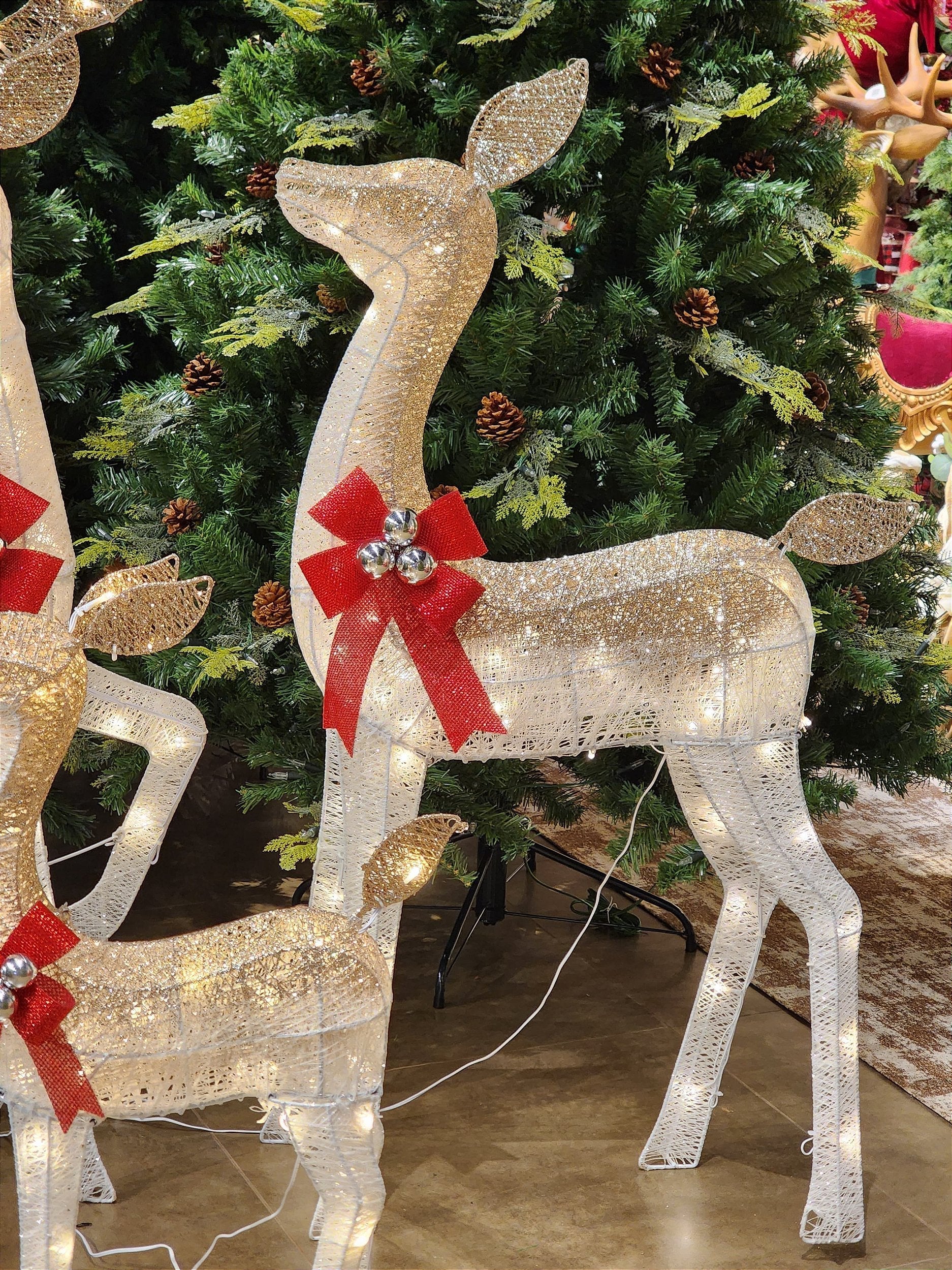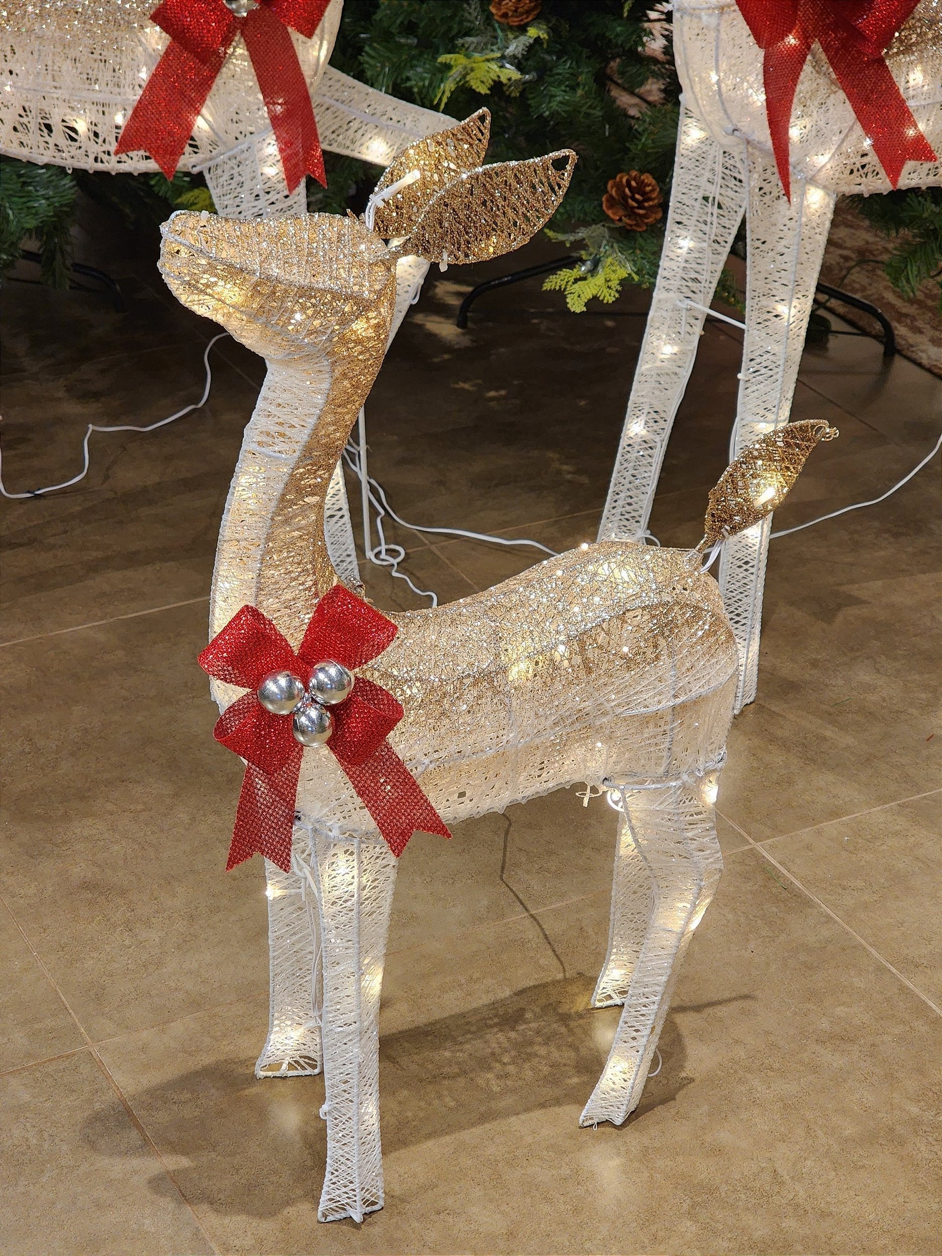TRIO DE RENAS ARAMADA BRANCA COM CHAMPANHE WARM USO INTERNO E EXTERNO BIVOLT